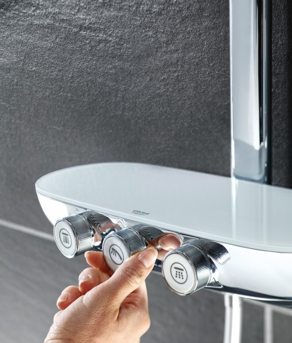 GROHE представляет уникальную систему GROHE Rainshower®, оснащенную инновационной технологией кнопочного управления SmartControl. Управление всеми функциями душа еще никогда не было настолько простым. Всего лишь одной кнопкой можно включить душ и управлять напором душевых струй. Включение душа происходит по нажатию кнопки с интуитивно понятным символом, а сила напора воды регулируется вращением рукоятки, которой легко управлять даже мокрыми руками.