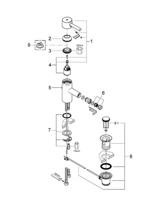 GROHE Essence Смеситель однорычажный для биде DN 15
