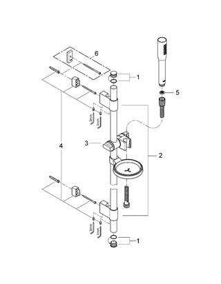 GROHE QuickFix® (регулируемое расстояние между настенными креплениями штанги позволяет использовать для монтажа уже имеющиеся отверстия в стене)