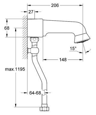 - в комплекте с душевой водоводной трубкой настенного монтажа