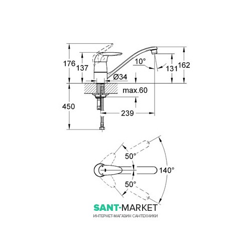 Описание смесителя для кухни Grohe Eurodisc (33770000)