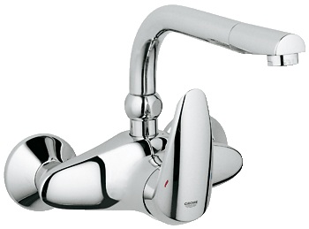 Смеситель для кухни Grohe Eurodisc 33773001 монтируется на стену. Дизайн и цвет хром позволяют использовать модель в классических и современных интерьерах. Излив выполнен из трубки круглого сечения в традиционной форме. Его длина составляет 27,1 см. Он оснащен аэратором, может поворачиваться в нужную сторону. Оборудование качественное, долговечное.