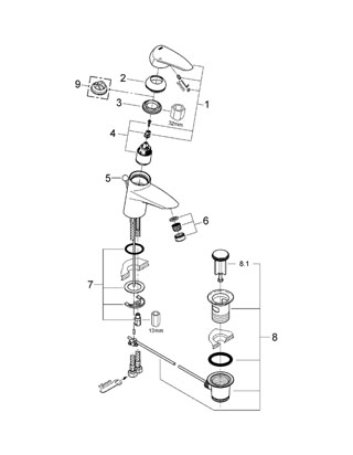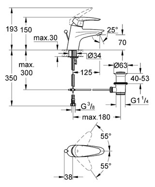 Смеситель для раковины однорычажный с донным клапаном Grohe коллекция Eurodisc хром 3318300E