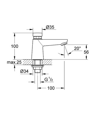 GROHE Euroeco Cosmopolitan T Автоматический вертикальный вентиль, DN 15
