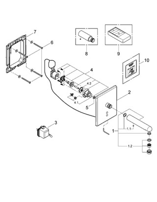 Смеситель для раковины электронный сенсорный настенный Grohe Europlus E суперсталь 36243SD0