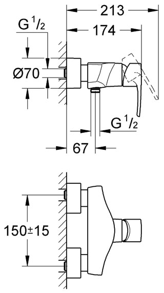 Смеситель для душа настенный однорычажный Grohe коллекиця Europlus хром 33577001