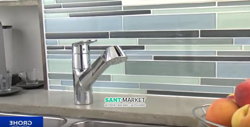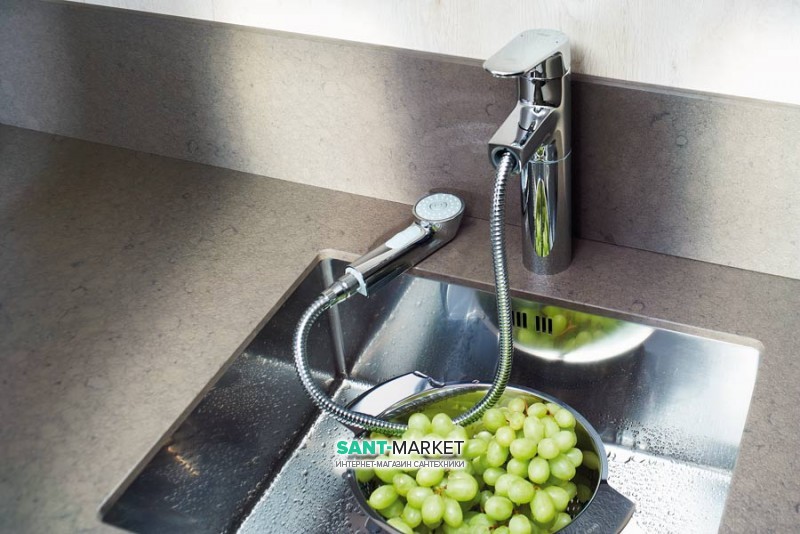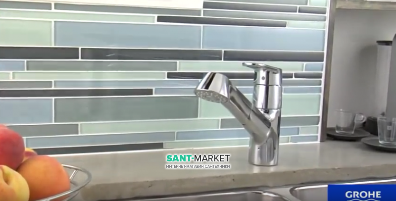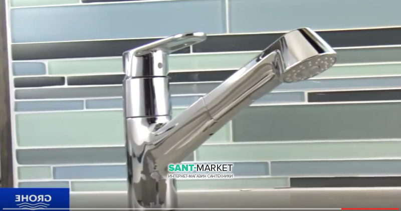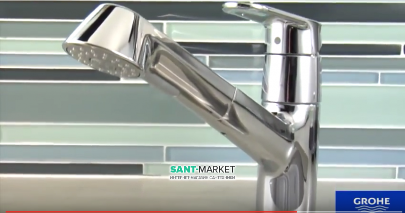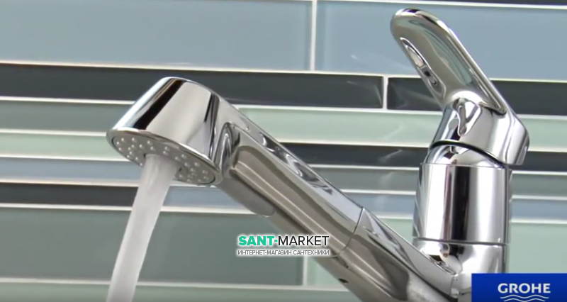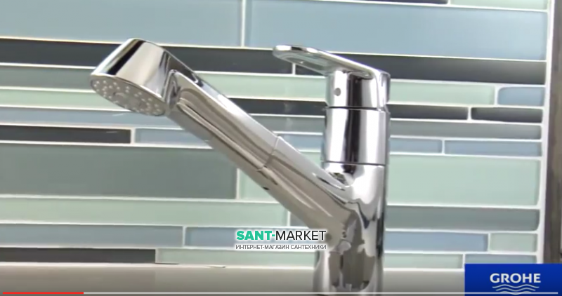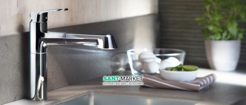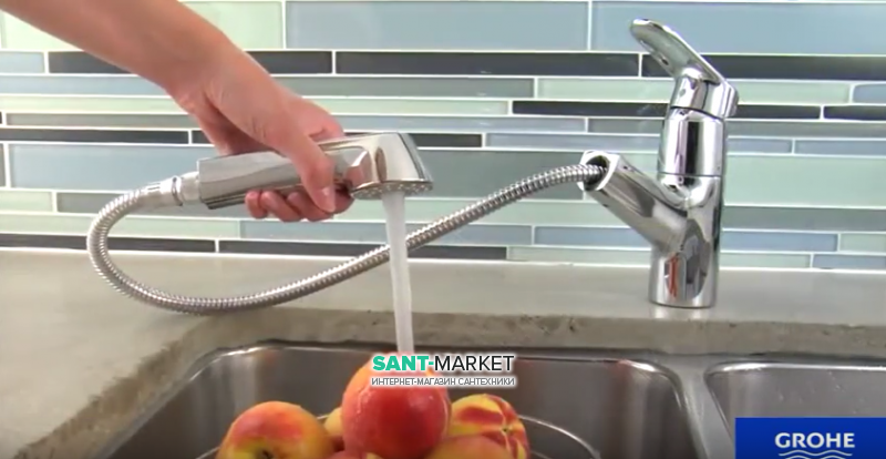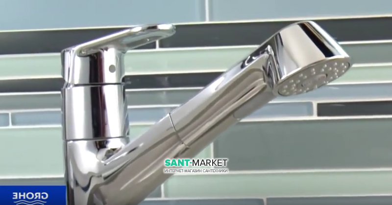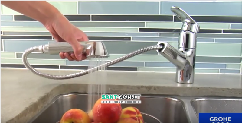 Смеситель для кухни с выдвижной лейкой GROHE Europlus однорычажный 33933002