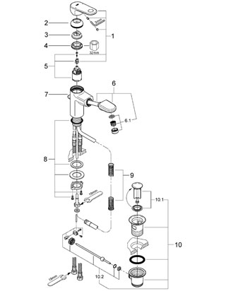 Смеситель для раковины однорычажный с донным клапаном Grohe коллекция Europlus New хром 33155002
