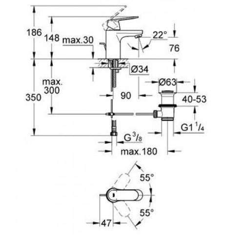 Смеситель для раковины однорычажный с донным клапаном Grohe Eurosmart Cosmopolitan хром 32825000