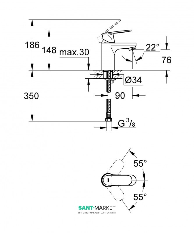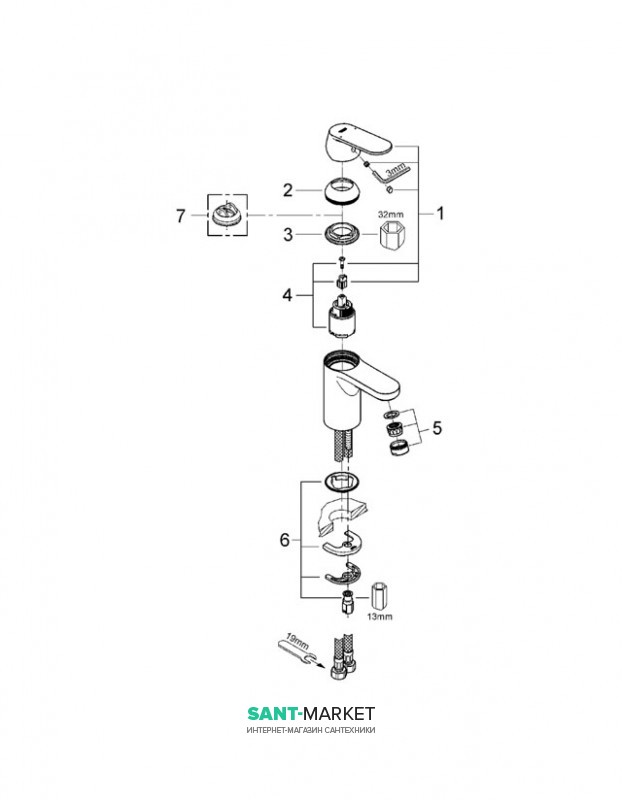Смеситель для раковины однорычажный Grohe коллекция Eurosmart Cosmopolitan хром 32824000