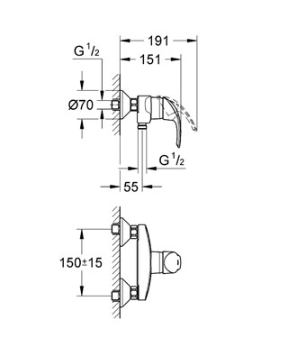 Смеситель для душа настенный однорычажный Grohe коллекция Eurosmart хром 33555001