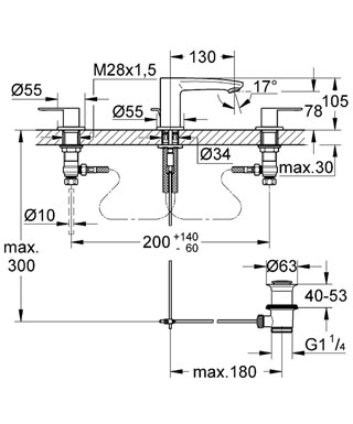 Смеситель для раковины двухрычажный с донным клапаном Grohe Eurostyle Cosmopolitan хром 20208002
