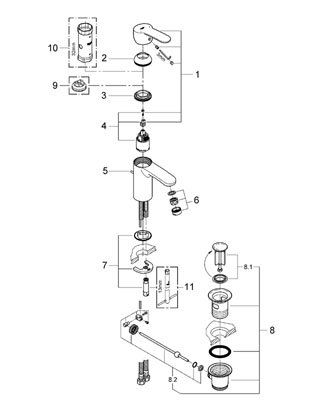 Смеситель для раковины однорычажный с донным клапаном Grohe Eurostyle Cosmopolitan хром 33552002