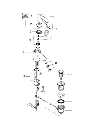 Смеситель для раковины однорычажный с донным клапаном Grohe коллекция Eurostyle хром 3355200E
