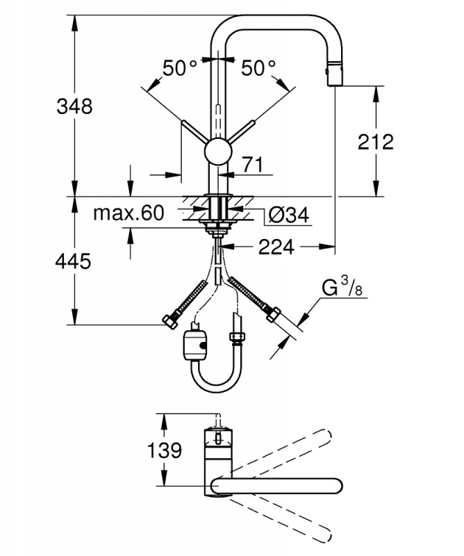 - GROHE EasyDock легкое вытягивание и возврат на место выдвижного излив