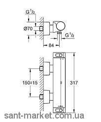 Смеситель для душа настенный двухвентильный с термостатом Grohe Grohtherm 2000 хром 34169001