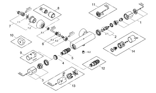 - GROHE TurboStat® встроенный термоэлемент встроенный стопор смешанной воды