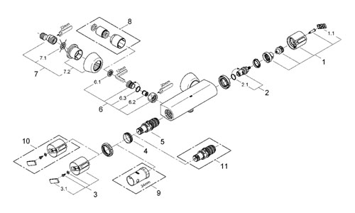 Рукоятка расхода с экономичной кнопкой GROHE EcoButton и индивидуально устанавливаемым стопором
