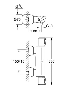Смеситель для душа настенный двухвентильный с термостатом Grohe Grohtherm 2000 хром 34169000