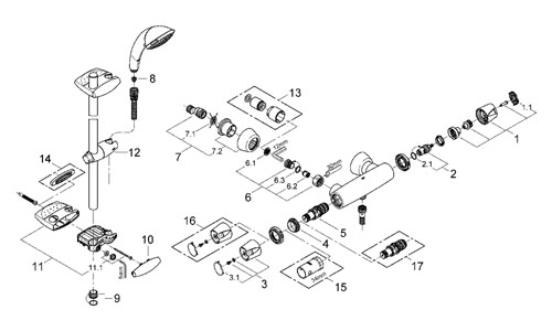 Смеситель для душа двухвентильный с термостатом Grohe Grohtherm 3000 с душевым набором хром 34196000