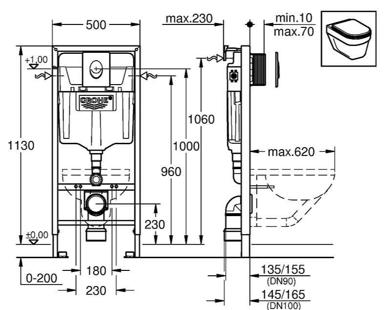 2) Комплект 3 в 1 Grohe Rapid SL 38750001 (инсталляция + кнопка смыва + крепления)