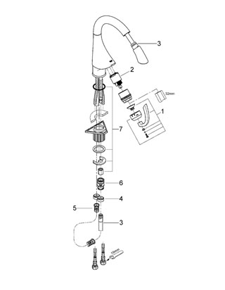 - встроенный выдвижной излив с аэратором с возвратной пружиной