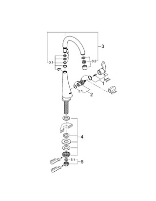 Комплект поставки вертикального вентиля для мойки Grohe K4 (30004SD0)