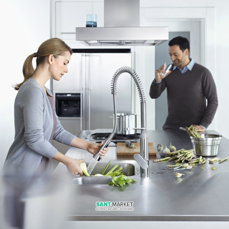 Смеситель для кухни с выдвижной лейкой GROHE K7 однорычажный высокий излив 32948DC0