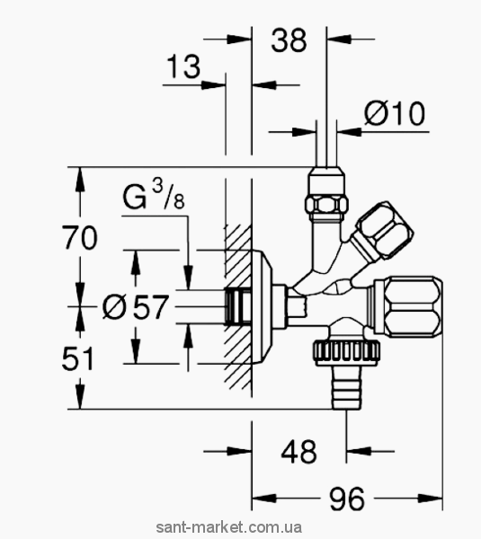 Спешите купить Grohe Комбинированный угловой вентиль 1/2 цвет хром 22034000 по акционной цене.