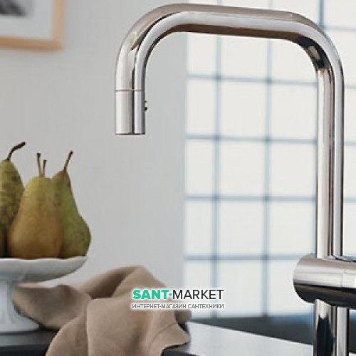 Стильная новинка коллекции Grohe Minta с изливом П-образной формы выполнена в минималистичном стиле в цветах «хром» и «суперсталь». К числу преимуществ данной модели, помимо эстетичного внешнего вида, можно отнести практичность: выдвижная лейка увеличивает радиус действия смесителя и предусматривает различные режимы струи.