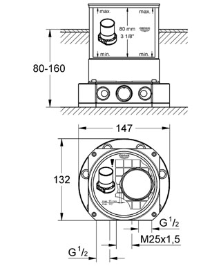 - 1/2” подключение смешанной воды