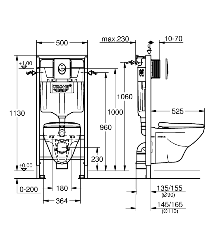 Набор инсталляция GROHE Solido Compact 4-в-1 с подвесным унитазом (39400000)