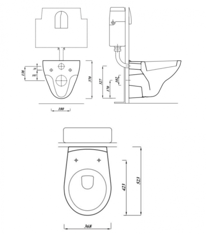 2 резьбовых стержня для унитаза с промежуточной расстоянием крепления 180 или 230 мм
