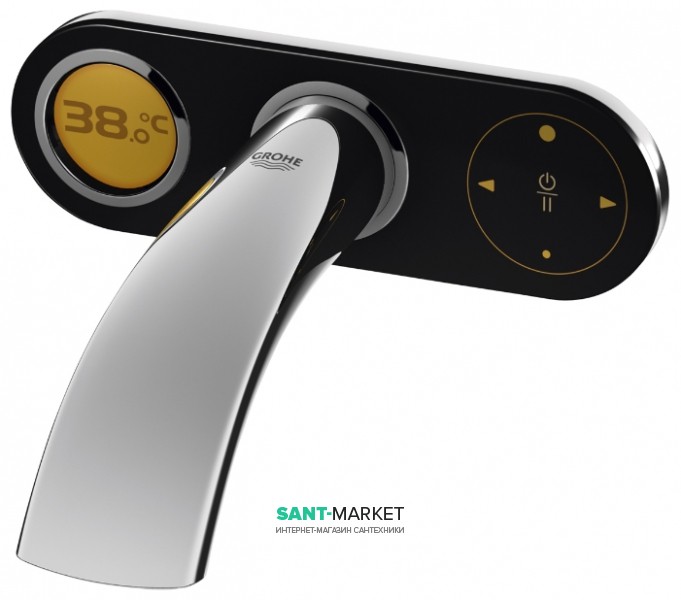 Смеситель для раковины электронный настенный с донным клапаном каскадный Grohe Ondus хром 36045000