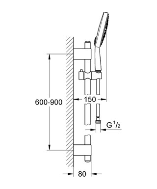 GROHE QuickFix® (регулируемое расстояние между настенными креплениями штанги позволяет использовать для монтажа уже имеющиеся отверстия в стене)