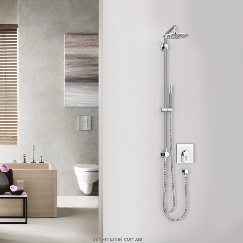 Grohe Quadra 19455000 - это однорычажный смеситель для душа с металлической розеткой квадратной формы. Предназначен для встраивания в стену. Подобный смеситель часто используют с верхним душем.