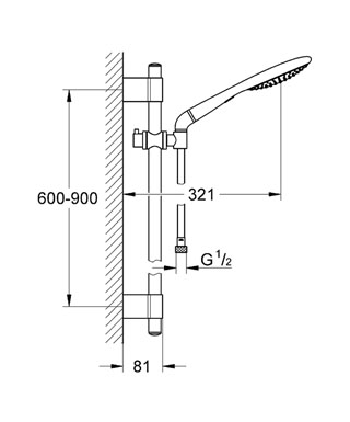 GROHE QuickFix® (регулируемое расстояние между настенными креплениями штанги позволяет использовать для монтажа уже имеющиеся отверстия в стене)