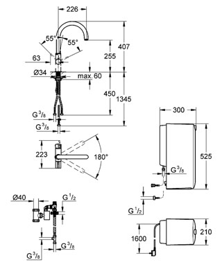 Система для кипячения воды GROHE Red подает как кипящую воду, так и горячую и холодную водопроводную воду. Кипящая и смешанная вода течет по двум раздельным трубам в систему GROHE Red и выходит через две раздельные зоны аэратора. Накопитель кипящей воды служит для нагрева и накопления питьевой воды в напорных системах. Накопитель кипящей воды пригоден для подключения к водопроводной сети с максимальным давлением воды 0,8 МПа (8 бар). Подключение к горячей воде не предусмотрено.