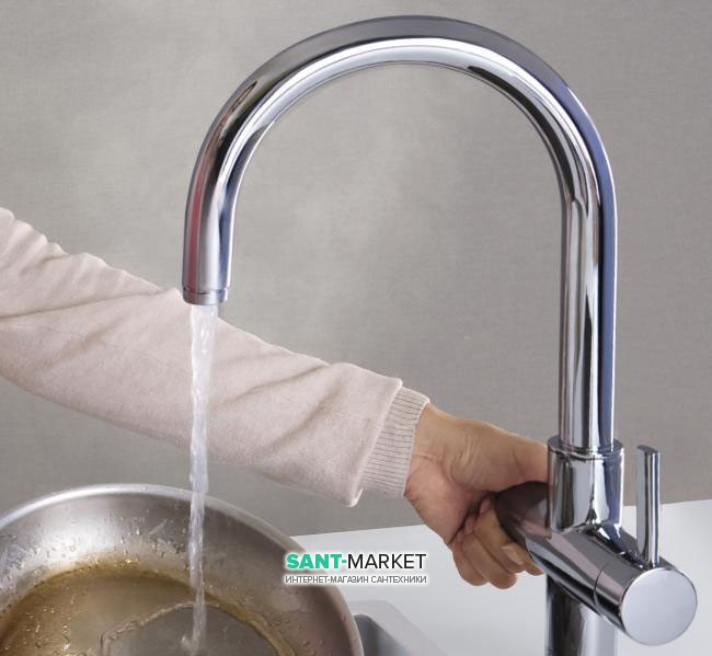 Технология SilkMove обеспечивает плавность хода рычага на протяжении всего срока службы изделия, а хромированное покрытие StarLight надежно защищает поверхность от загрязнений и царапин. Конструкция данной модели предусматривает два отдельных канала для водопроводной и питьевой воды, что гарантирует безопасность эксплуатации.