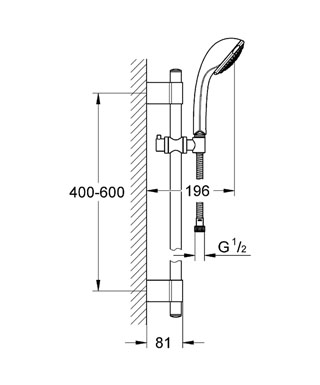 GROHE QuickFix® (регулируемое расстояние между настенными креплениями штанги позволяет использовать для монтажа уже имеющиеся отверстия в стене)