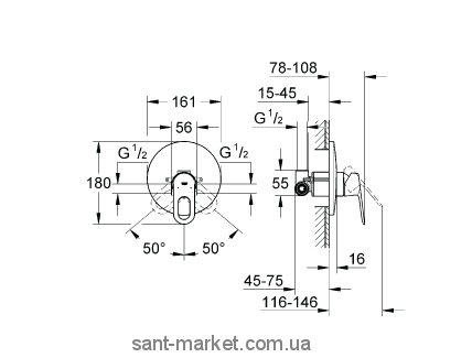 Смеситель для душа скрытого монтажа Grohe коллекция Bau Loop хром 29080000