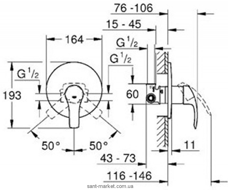Смеситель Grohe Eurosmart New 33556002 - удобное изделие сантехники для душа со скрытой установкой на стену без подключения и шланга. Смеситель данной модели оснащен такими технологиями: Starlight, которая обеспечивает приятный внешний вид и блеск поверхности изделия на долгий срок, SilkMove плавный ход рукояток и рычагов смесителя, благодаря керамическому картриджу, система быстрого монтажа GROHE QuickFix.