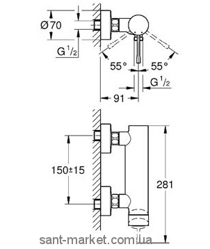 Смеситель для душа настенный Grohe коллекция Essence New хром 33636001