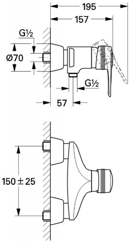 Смеситель для душа настенный однорычажный Grohe коллекция Europlus Solid хром 33322000
