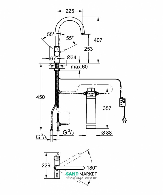 Набор смеситель для кухни с фильтром Grohe Blue однорычажный 33249001
