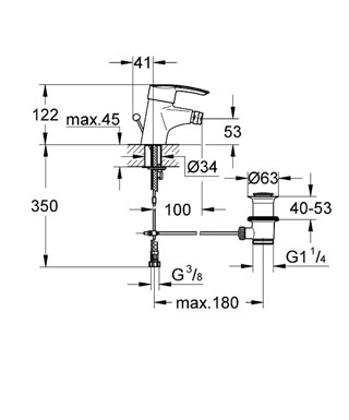 - Размеры смесителя (ШхГхВ) в.122 мм
