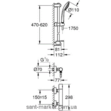 Термостат для душа Grohe Grohtherm 1000 Cosmopolitan New с душевым гарнитуром (штанга 600 мм) хром 34286002