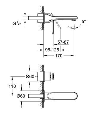 Смеситель для раковины однорычажный настенный скрытый Grohe коллекция Veris хром 19342000