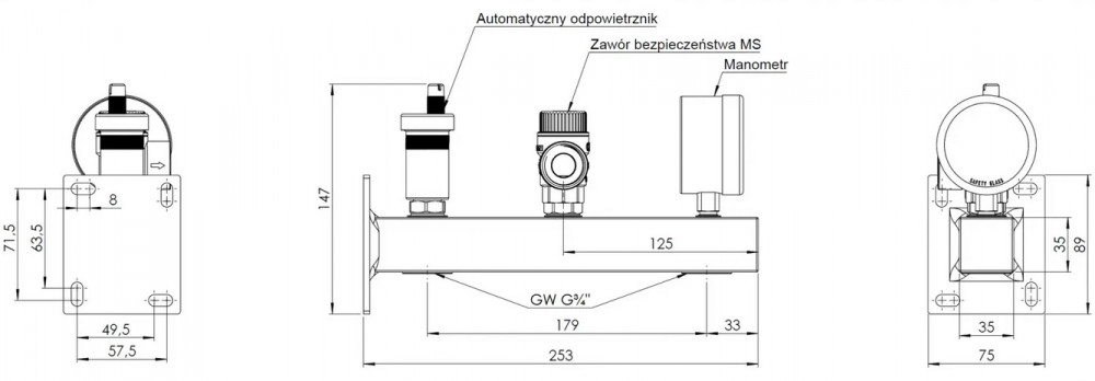 Группа безопасности котла Afriso BSS с подключением к расширительному баку (до 25 л) 1,5 бар 42,6 кВт