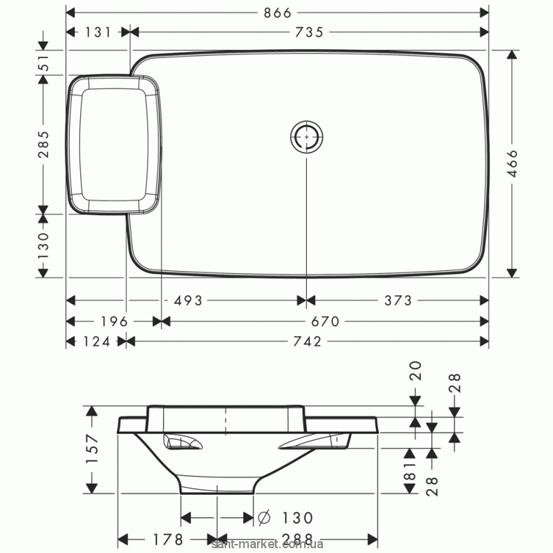 Hansgrohe Axor Bouroullec 19945000 Встраиваемая раковина, 866 мм,1 полочка, только в сочетании со смесителями для раковины без стержня тяги, из минерального литья с гелькоутом.